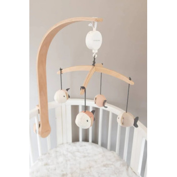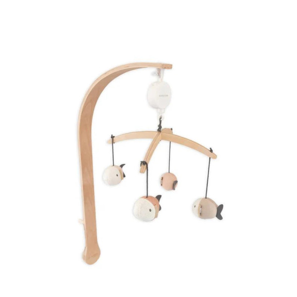 Rendez l'heure du coucher magique avec le mobile en bois naturel de Bamboom auquel sont suspendus d'adorables petits poissons. Ces petits animaux colorés et doux, réalisés dans des couleurs neutres, bougent au rythme de la musique grâce au mobile en bois, idéal pour rendre la chambre de votre bébé encore plus accueillante.