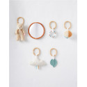 ✔ 6 activités variées : clochette, pouët, 2 éléments en papier froissé, miroir, jouet de dentition