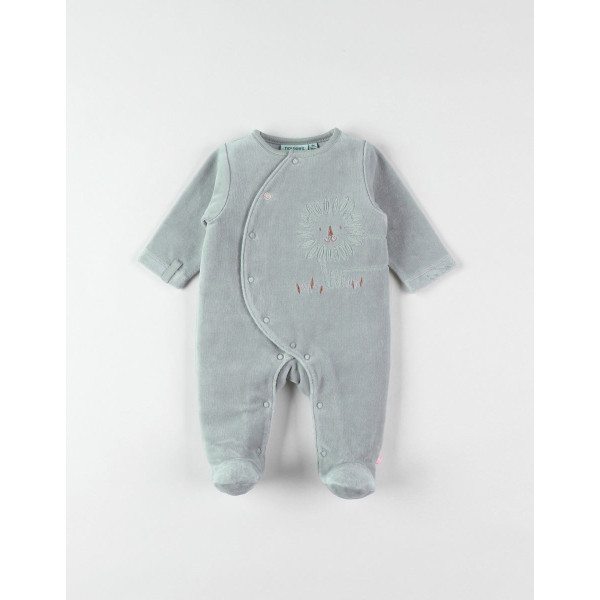 Le pyjama est soigneusement confectionné avec un velours côtelé, une broderie raffinée du lion, un élégant passepoil sauge et une pression personnalisée arborant le lion.