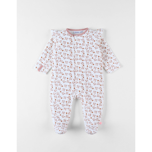 Le pyjama est soigneusement confectionné avec un velours côtelé, un imprimé coeur, un élégant passepoil vieux-rose et une pression personnalisée arborant d'un coeur. Son petit plus : ses volants au niveau des épaules.