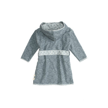 Peignoir merveilleusement doux dans une combinaison de tissu éponge (100 % coton biologique) et de jersey en taille 86/92. Le tissu éponge uni apporte simplicité et tranquillité. L'espièglerie des imprimés sur la capuche et sur la ceinture font de ce peignoir un incontournable amusant et pratique pour la maison, la chambre d'enfant ou pour une visite à la plage.