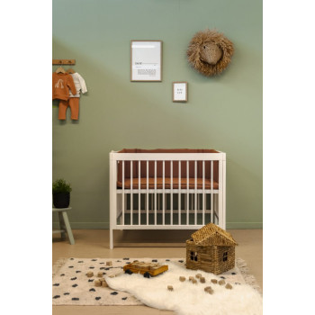 En coton biologique, taille 30 x 170 cm. Convient pour un lit de dimensions 60 x 120 cm ou 70 x 140 cm et un parc de dimensions 75 x 95 cm.