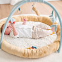 Ce magnifique tapis de jeu avec arceaux et bord rembourré épais offre à votre bébé un espace sûr et confortable pour jouer et explorer. Avec Felix le blaireau, Leo l’âne et de nombreuses activités ludiques, votre tout-petit découvre hochet, miroir, peluches avec couineur, anneau de dentition et étiquettes. Ces éléments stimulent les réflexes de préhension et participent au développement de la motricité fine et globale tout en s’amusant.