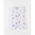 Pratique, la combinaison short possède des pressions à l'entre-jambe et une ouverture boutonnée en bois à l'avant afin de faciliter l'habillage et le change.