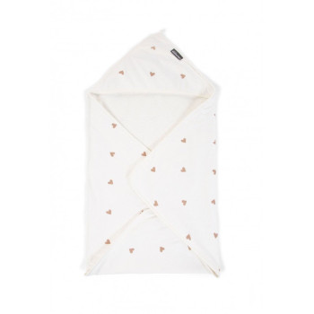 La cape de bain pour bébé a un beau motif de cœurs.