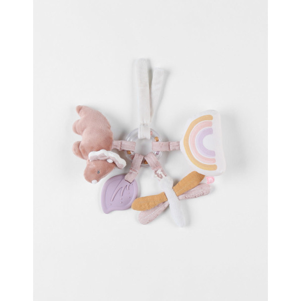 Le trousseau d'activités Popsie, Gigi & Louli est conçu pour stimuler les sens de bébé et l'accompagner dans son éveil. Grâce à ses matières variées et ses activités ludiques, il offre une expérience sensorielle complète. Idéal pour développer la motricité fine, il se fixe facilement à la poussette ou au siège auto grâce à son lien avec velcro, évitant ainsi toute perte lors des balades.