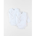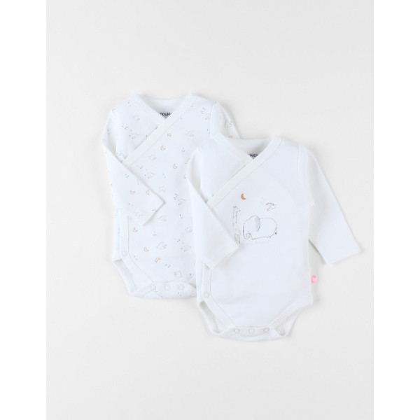 Le set de 2 bodies croisés à manches longues écru est l’indispensable du quotidien de votre bébé. On adore ses imprimés oiseaux, éléphant et girafe !