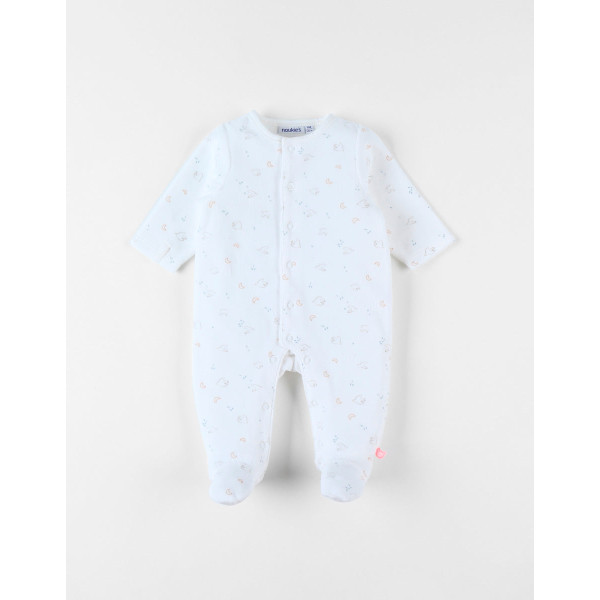 Le pyjama 1 pièce écru en velours à imprimé oiseaux apporte douceur et confort pour le sommeil de bébé.