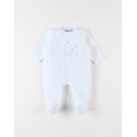 Le pyjama 1 pièce écru en velours brodé d'une girafe et d'un éléphant apporte douceur et confort pour le sommeil de bébé.