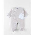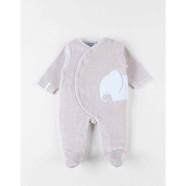 Le pyjama 1 pièce greige en velours brodé d'un éléphant appliqué en Groloudoux apporte douceur et confort pour le sommeil de bébé.