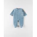 Le pyjama 1 pièce bleu moyen en velours brodé d'un Long Cou en relief apporte douceur et confort pour le sommeil de bébé.