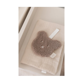 Confectionné en tissu teddy et éponge douce, il est agréable au toucher et parfaitement adapté à la peau délicate des tout-petits. Sa petite boucle pratique permet de fixer facilement une tétine ou un anneau de dentition, pour un usage simple et quotidien.