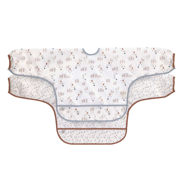 Les bavoirs à manches longues en polyester de la collection Tiny Farmer Mouton offrent une protection idéale pour manger et colorier. Les bavoirs sont étanches et conviennent aux enfants de 6 à 24 mois.