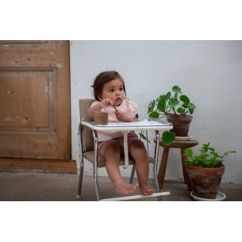 Gardez les vêtements de votre bébé propres grâce à ce bavoir Koeka pratique. En raison de sa grande taille, la bavette protège les vêtements des éclaboussures. Comme le bavoir est muni d'un bouton-pression à deux positions différentes, il convient aussi bien aux bébés qu'aux jeunes enfants, ce qui permet de l'utiliser pendant longtemps. La finition avec le passepoil qui s'harmonise avec la couleur de l'éponge donne au bavoir son propre look. Cette belle éponge résistante aux boucles et qui évacue l'humidité est facile à laver et sans fin.