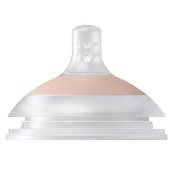La base large et ferme avec revêtement souple assure un bon positionnement des lèvres et un maintien optimal. Sa surface douce imite la texture de la peau, renforçant le lien émotionnel et le confort pendant la tétée.