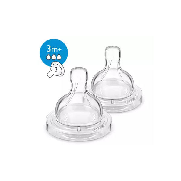 La gamme de biberons Anti-colic Philips Avent offre différents débits de tétine, selon la maturité de votre bébé. Notez que les âges suggérés sont approximatifs puisque les bébés évoluent à des rythmes différents. Toutes les tétines sont disponibles par lots de deux avec les débits suivants : nouveau-né, lent, moyen, rapide, variable et liquides épaissis.