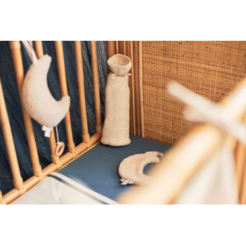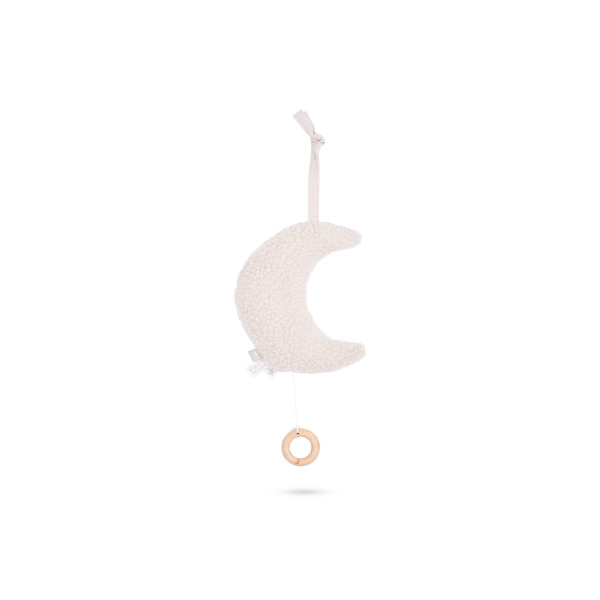 Tirez simplement sur la ficelle et la lune chantera une berceuse. Un peu de musique peut avoir un effet calmant sur un bébé. La lune a un cordon de serrage avec un anneau en bois et en haut il y a une ficelle pour accrocher le porte-musique de manière à ce que votre bébé puisse voir et entendre la lune mais ne puisse pas l'attraper. La chanson « vous êtes mon rayon de soleil » dure environ 60 secondes à la fois ; assez longtemps pour endormir votre bébé. Si vous le répétez tous les jours, cela devient un rituel du sommeil et donc une reconnaissance pour aller dormir.