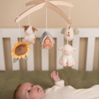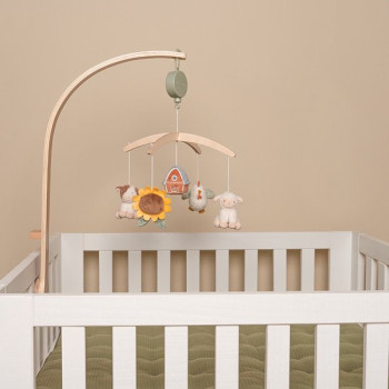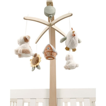 Offrez à votre bébé un moment de calme et de tendresse grâce à ce mobile musical en bois de la collection Little Farm. Conçu pour apaiser dès la naissance, il diffuse une douce berceuse qui accompagne les tout-petits vers le sommeil, tout en stimulant leur développement visuel.