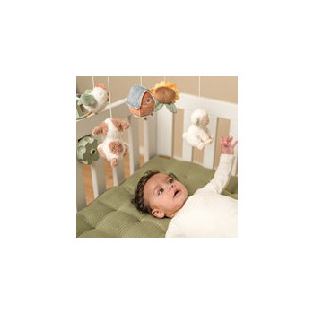 Cette belle mobile musical Little Dutch est apaisante pour les bébés grâce à la douce berceuse. Le mobile comporte cinq jouets de la collection Little Farm qui y sont suspendus. Les bébés aiment regarder le mouvement de ces jouets, ce qui stimule leur développement visuel. Le mobile musical convient dès la naissance et est facile à attacher au lit ou au parc pour bébé. ATTENTION! Attachez ce jouet hors de la portée de votre enfant. Afin d’ éviter tout risque d’étranglement, ôter le jouet dès que l’enfant tente de se mettre à quatre pattes ou de ramper. Assemblage par un adulte requis.