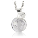 ✔ Un pendentif bola de grossesse (diamètre : 20 mm) en cuivre argenté, orné de jolis petits pieds en relief