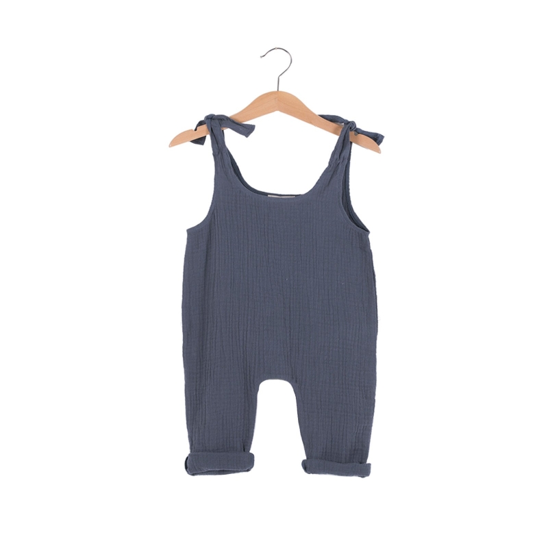 Description générale : Salopette à bretelles à nouer sur les épaules. Made in : Portugal Matière : Gaze de coton Composition : 100% Coton- certifié OEKO – TEX Entretien : Lavage en machine à 30° Taille : Ce modèle taille grand. Nous vous conseillons de faire correspondre la taille commandée avec l’âge de votre enfant. Il n’est pas utile d’acheter la taille au-dessus.