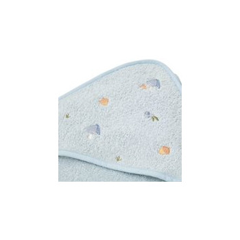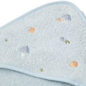 Conçue à la fois pour être pratique et charmante, la capuche douce assure sécurité et confort en maintenant la tête de votre bébé au chaud après le bain. La couleur bleu clair de la serviette est à la fois apaisante et élégante, tandis que la capuche est décorée de jolis champignons brodés issus de la collection Forest Friends, apportant une touche naturelle et féérique.