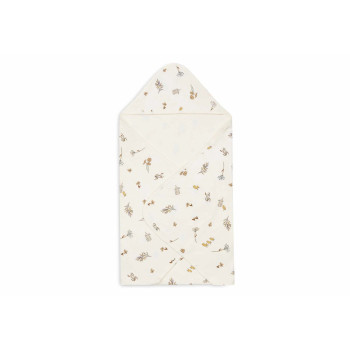 Son imprimé Riverside, orné de lapins, de canards et de plantes aquatiques, apporte une touche tendre et poétique au moment du bain. La capuche intégrée garde la tête de bébé bien au chaud, tandis que la boucle d’accroche pratique permet de suspendre facilement la cape après utilisation.
