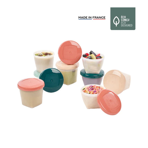 Une surface réinscriptible sur leurs couvercles permet de noter la recette conservée ainsi que la date de préparation. Leurs graduations assurent un dosage précis pour s'adapter à toutes les étapes de la diversification alimentaire.