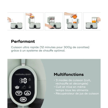 Offrez à votre bébé des repas faits maison, sains et équilibrés, grâce au Nutribaby Glass Celadon, le robot cuiseur bébé 4-en-1 qui vous facilite la vie !