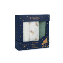 Voici le cadeau parfait pour un nouveau-né ! Idéale pour faire un cadeau, cette magnifique boîte étoilée au fond bleu nuit contient 3 langes extra-doux et faciles à emporter partout.