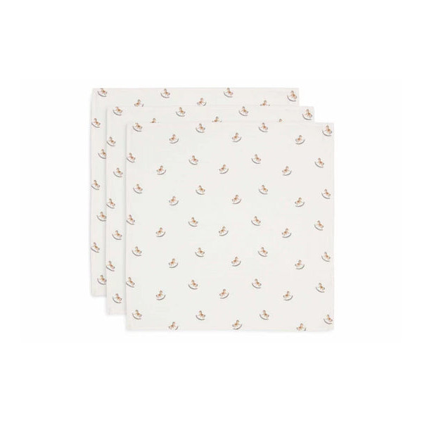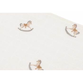 Vous n'aurez jamais assez de langes en gaze de coton! Ils absorbent d'énormes quantités d'eau et sèchent en un rien de temps ! Le thème Nostalgic Ride nous fait voyager dans le temps ! De gentils chevaux à bascule et des tons beiges décorent ces délicats langes, et vous n'en manquerez jamais puisque ces langes sont livrés par lots de 3! Les langes en gaze de coton ont une taille de 70x70 cm, ce qui rend ces articles très agréables à utiliser.