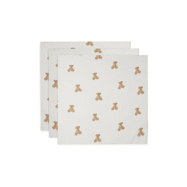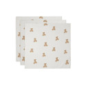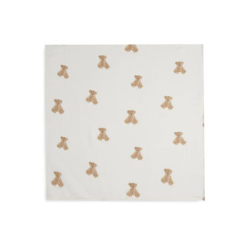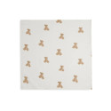 Ces jolis langes gaze ont un superbe motif Teddy Bear intégral. Le fond est ivoire et les ours sont de couleur biscuit et châtaigne.