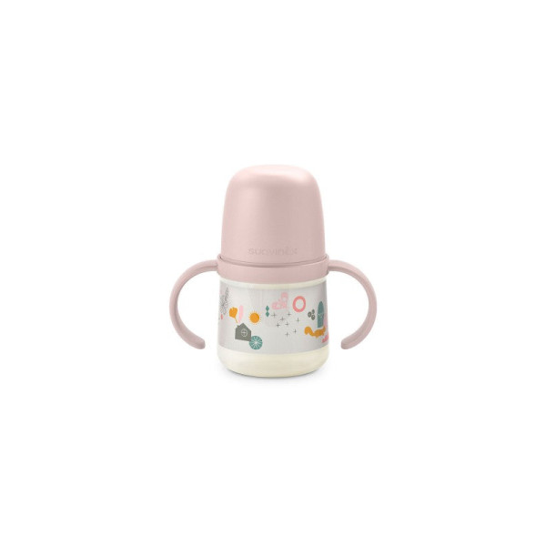 Avec le gobelet imaginé par Suavinex votre enfant passera du biberon aux premières tasses d'apprentissage sans difficulté.