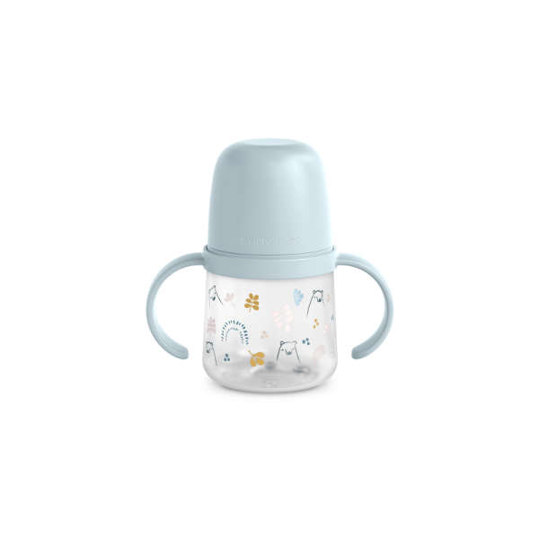 Avec le gobelet imaginé par Suavinex votre enfant passera du biberon aux premières tasses d'apprentissage sans difficulté.