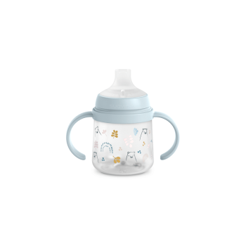 Doté d'une tétine plus haute et plus effilée avec des bords arrondis, il constituera une transition naturelle entre le biberon et les classiques tasses d'apprentissage.