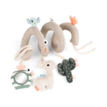 La spirale d’activités Lalee Sand de Done by Deer est un jouet d’éveil sensoriel conçu pour stimuler la curiosité des bébés dès la naissance. Facile à fixer grâce à ses ficelles souples, elle s’attache au lit, à la poussette, au siège-auto ou au landau pour divertir bébé à la maison comme en promenade.