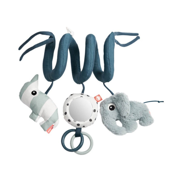 La spirale d'activité flexible peut être fixée au berceau, au siège d'auto, au landau ou même au bras de la maman. Un divertissement parfait sur le pouce.