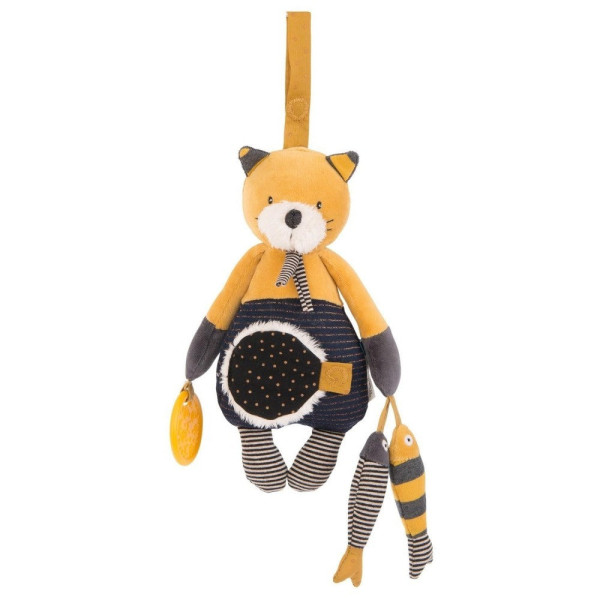 Avec sa superbe combinaison à rayures, notre petit minou moutarde vient amuser bébé : Des sardines zébrées contenant du papier crissant, un bruit de grelot, un pouët pouët dans sa tête, une spatule dentaire pour ses premières dents et oh ! Il a même caché un miroir dans sa tenue. Avec son pelage velours tout doux, ses jolies couleurs et les éléments sonores qu'il porte, Lulu favorise l'éveil sensoriel de votre enfant : le toucher, l'ouïe et la vue. Simple à prendre en main, il l'aide aussi à développer sa motricité fine.