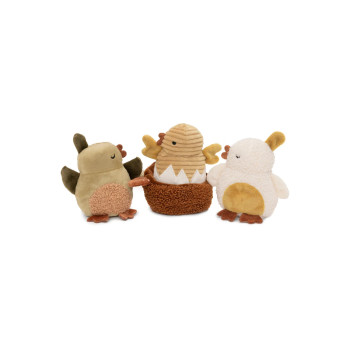 Ce set d’oiseaux en tissu réunit trois adorables personnages – Lulu, Chirp et Feather – accompagnés d’un nichoir doux et joliment décoré. Chaque oisillon possède sa propre personnalité : Lulu, petite exploratrice curieuse, part toujours à la découverte ; Chirp, joyeux chanteur, gazouille joyeusement toute la journée ; Feather, espiègle et léger, adore virevolter dans les airs.