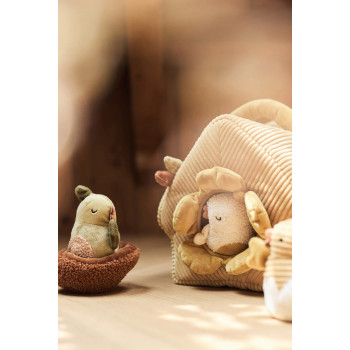 Le nichoir, orné de feuilles et doté d’une ouverture en forme de fleur, émet un bruit de froissement, invitant l’enfant à manipuler, explorer et développer son éveil sensoriel. Grâce à sa poignée pratique, il se transporte facilement partout, pour accompagner les petits dans toutes leurs aventures. Un ensemble tendre et ludique, parfait comme cadeau de naissance pour stimuler l’imaginaire des tout-petits.