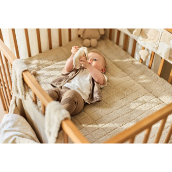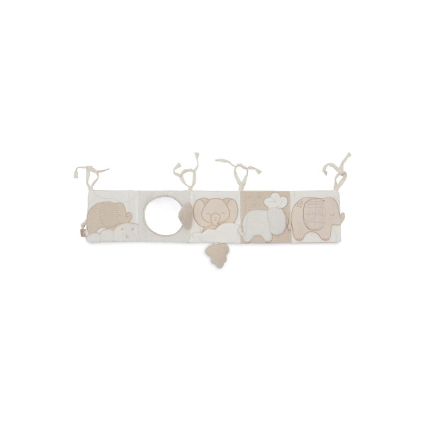 Facile à installer, il s’accroche aisément au parc, au lit ou à la poussette grâce à ses cordons pratiques.