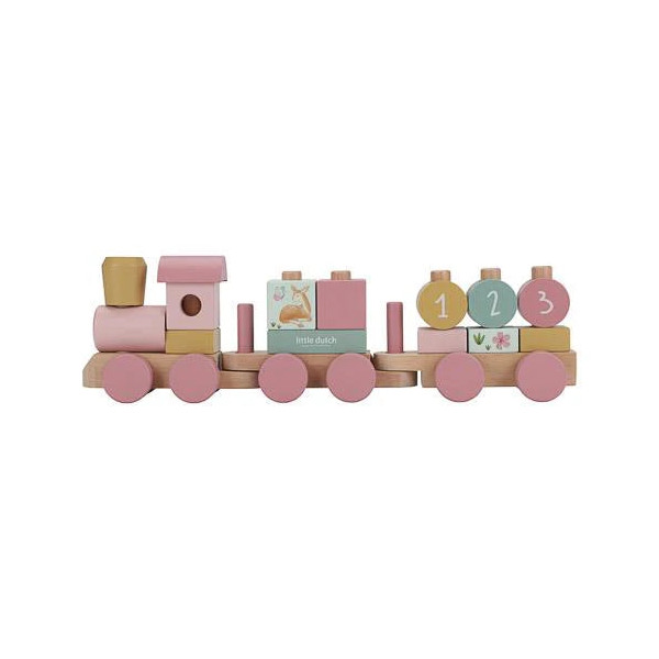 Ce train empilable en bois est composé de trois wagons à assembler avec de jolis blocs décorés de fleurs colorées, d’oiseaux amicaux et des numéros 1, 2 et 3. En empilant les 17 pièces, votre enfant découvre les formes, les couleurs et les chiffres de manière ludique et créative.