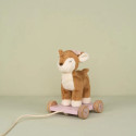 Monté sur un chariot en bois décoré, ce cerf tout doux suit ton enfant partout grâce à sa ficelle facile à attraper. Ensemble, ils partent à la découverte d’un monde peuplé de fleurs imaginaires et de fées dansantes. Un jouet qui stimule le mouvement tout en laissant place à l’imaginaire.