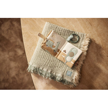 Explorez le monde avec le carnet d'activités "On The Go" ! Ce livret innovant, pensé pour les jeunes parents et leurs tout-petits, est le compagnon idéal pour éveiller la curiosité et les sens de votre enfant, où que vous soyez. Grâce à ses quatre pages de tissu tricoté super doux en Sea Green et Cloud Blue , ce carnet est parfaitement adapté aux petites mains curieuses, prêtes à découvrir chaque recoin de ce petit univers tactile et coloré.