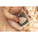 Broderies délicates sur les oiseaux et les cordons pour encourager l’exploration tactile.