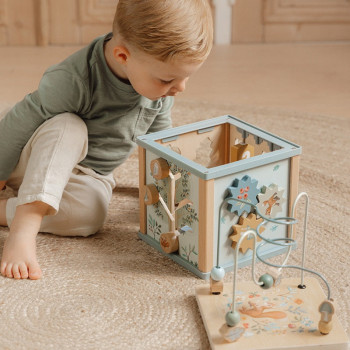 Offrez à votre enfant des heures de divertissement et d'apprentissage avec ce cube d'activités aux multiples facettes ! Chaque côté est décoré de charmants éléments Forest Friends et propose des activités éducatives et ludiques : un trieur de formes, des engrenages colorés, des puzzles amusants et un labyrinthe de perles stimulant sur le dessus.