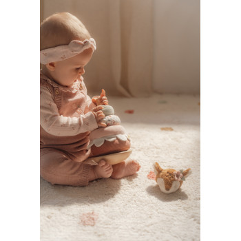 Ton enfant s’amusera à empiler les anneaux sur une base en mouvement, tout en relevant un petit défi moteur. À chaque nouvel anneau posé, le cerf s’anime dans une petite danse amusante, apportant une récompense pleine de fierté et de rires.