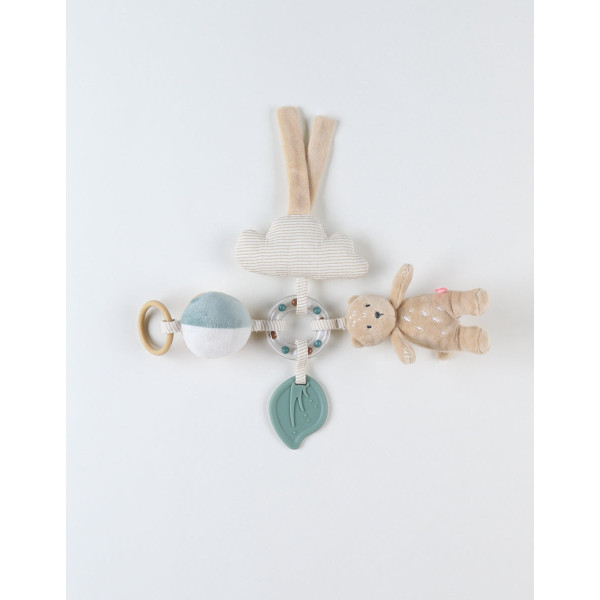 Facile à attraper et à manipuler, il accompagnera bébé partout, que ce soit à la maison ou en balade, grâce à son lien avec velcro qui permet de l’attacher à une poussette ou un siège auto.