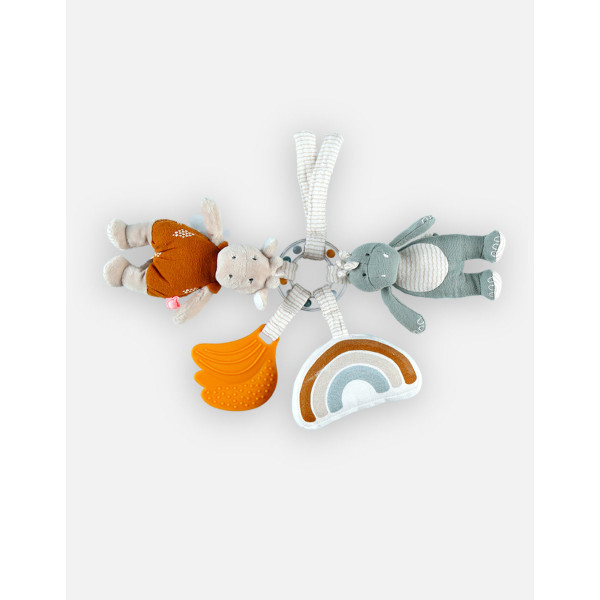 Pratique et sécurisé, un lien avec velcro à l'extrémité permet d'attacher facilement les jouets pour éviter de les perdre pendant les longues balades.