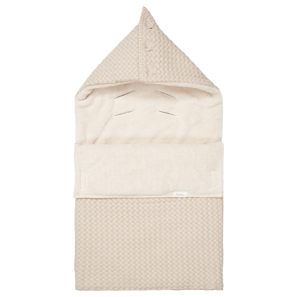 Cette chancelière doublée avec tissu en teddy s'installe dans un siège auto 0+ avec harnais à trois ou cinq points et garde votre petit bien au chaud lorsque vous êtes en déplacement pendant les mois les plus froids. Pour plus de chaleur et de confort, vous pouvez former une capuche en haut en utilisant une fermeture velcro. La chancelière est facile à ouvrir grâce à une fermeture éclair et le dessus peut être retourné et sécurisé par un cordon. Ainsi, votre petit est à l'aise et vous pouvez sortir avec style !